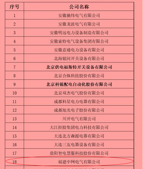 热烈祝贺福建中网电气有限公司顺利通过国家电网有限公司2018年变电设备(含电缆和附件)及杆塔类供应商资质能力核实,成功入围国家电网2018年变电设备-10-35kV开关柜的合格供应商名单。